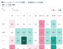 サーベイ結果はダッシュボード上でグラフィカルに表示されます。スコア比較のダッシュボードでは、組織や社員区分(正社員・契約社員・パートなど)、年齢、役職、職務などの切り口で結果を比較表示できます。例えば「正社員にとって評価・報酬への満足度は高い一方で、雇用形態にかかわらず成長・キャリアに対する満足度は低い」など、どの層がどの項目に課題を感じているかを、直感的かつ多角的に分析可能です。