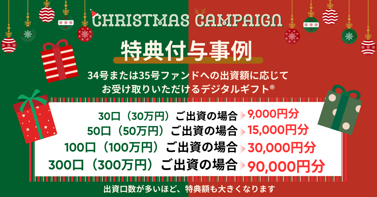 ※ 特典の付与期日は当該ファンドの運用開始後1ヶ月以内を予定しております。