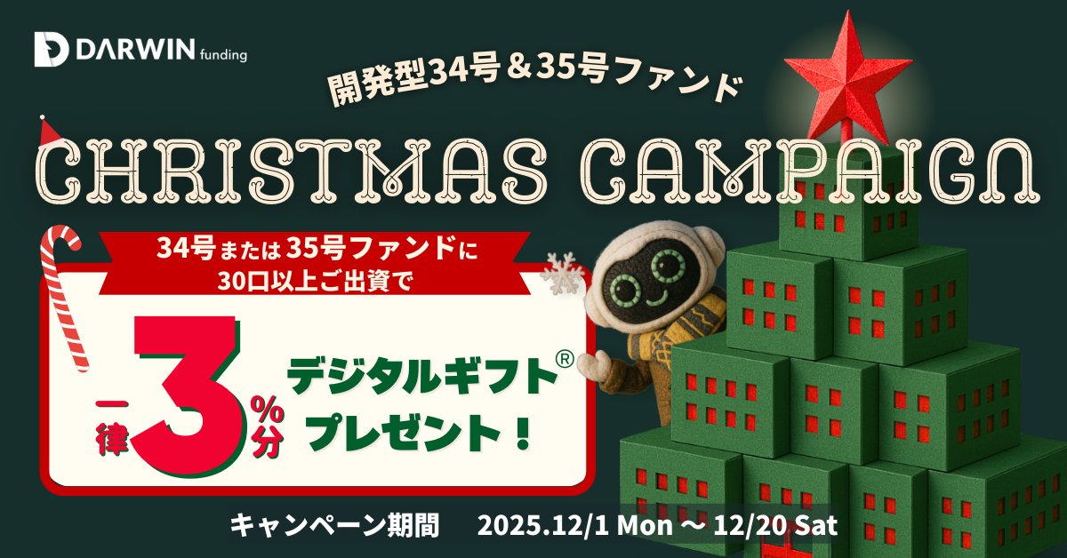 不動産投資型クラファン【DARWIN funding】開発型34号・35号ファンドを12月1日(月)9時より同時募集開始!!