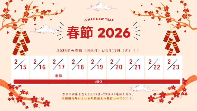 2026年の春節連休の日程