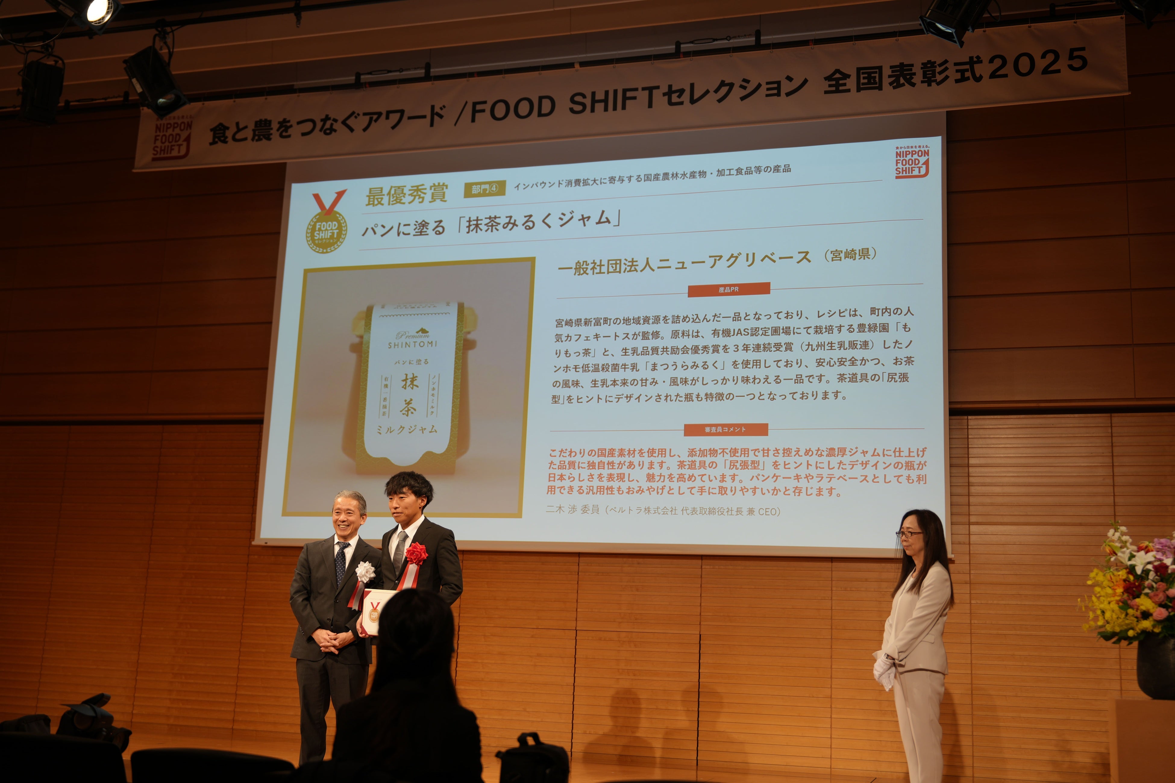 一般財団法人こゆ地域づくり推進機構(宮崎県新富町、以下「こゆ財団」)は、宮崎県新富町の一般社団法人ニューアグリベース(以下「ニューアグリベース」)が開発・販売する商品「抹茶ミルクジャム」が、農林水産省が推進するニッポンフードシフト表彰事業「FOOD SHIFTセレクション」において、全国の選定産品の中から最優秀賞を受賞したことをお知らせします。