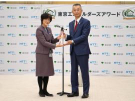 東京都から表彰状およびトロフィーが授与されました 3年連続東京エコビルダーズアワード受賞