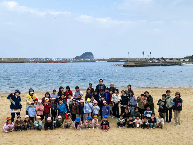 今年度は「自分たちからやりたい!」という声から現5年生が主催。呼子の3つの保育園や校長先生も参加し、地域全体で海を想う温かい活動となりました。