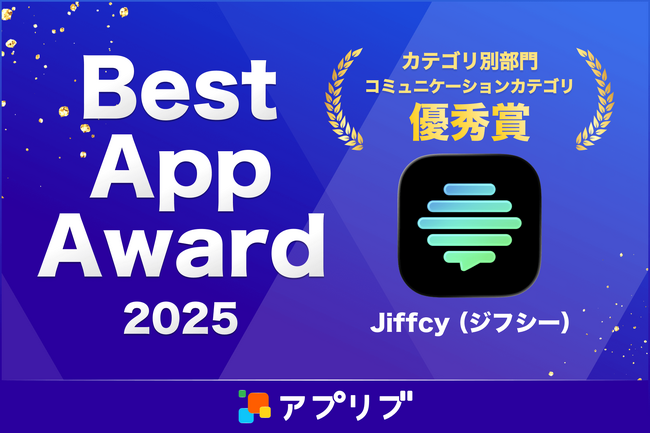 株式会社Jiffcy(本社:東京都新宿区、代表:西村 成城)が運営する、テキスト通話アプリ『Jiffcy』は、アプリブ「Best App Award 2025」にて優秀賞を受賞しました