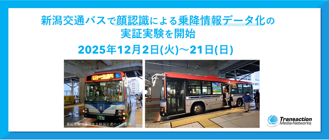新潟市内を運行する新潟交通株式会社(本社:新潟県新潟市、代表取締役:星野 佳人、以下 新潟交通)の一部路線バス車両にAI カメラを設置し顔認識による乗降データを作成するとともに、バス運営の省力化・効率化に向けたデータ利活用についても検証を行います。