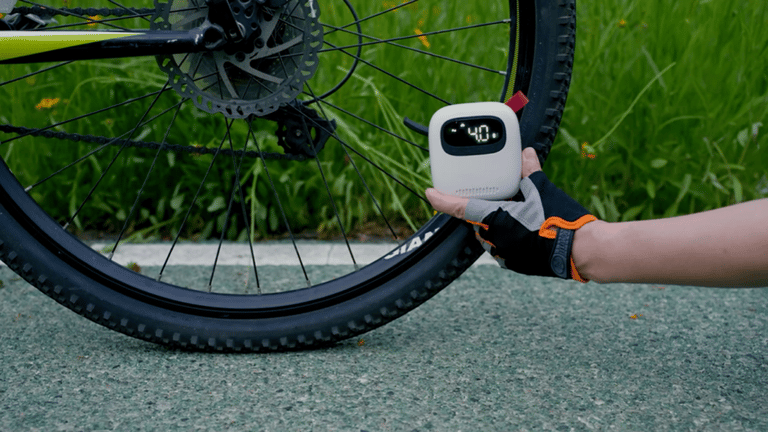 空気圧のチェックから空気入れまで自動で簡単!僅か270gのコードレス電動空気入れ