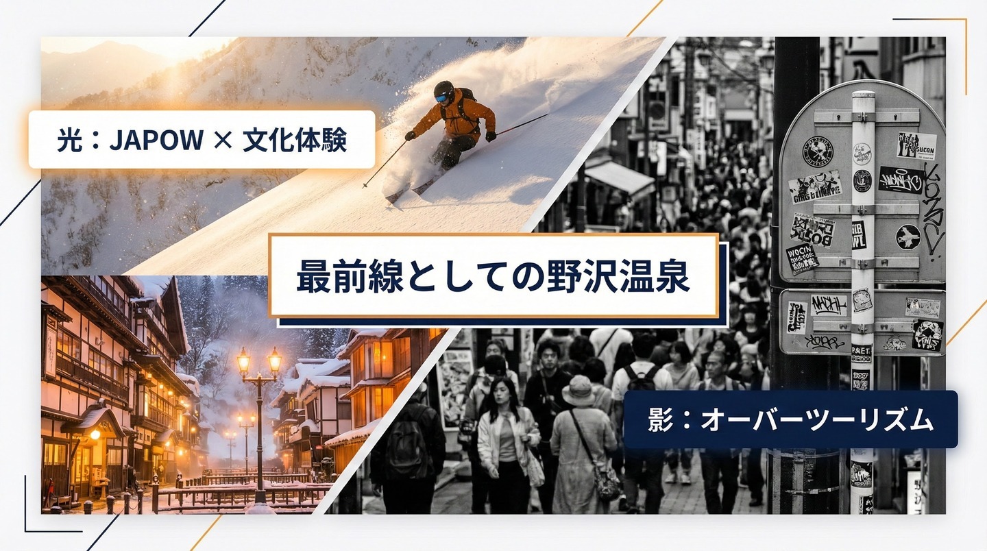 野沢温泉は、世界有数のパウダースノー「JAPOW」と、江戸時代から続く伝統的な外湯文化が共存する、日本の観光の「最前線」です。その成功は、地方創生のモデルケースとしてしばしば取り上げられますが、著者はその「光」の裏に潜む「影」に焦点を当てます。