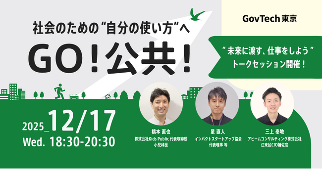一般財団法人GovTech東京(所在地:東京都新宿区、理事長:宮坂学、以下「GovTech東京」)は、社会課題の解決に取り組む多様なプレイヤーが「これからの公共」をテーマに議論するイベントを、2025年12月17日(水)にTokyo Innovation Baseにて開催します。