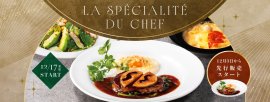 「牛フィレ肉とグラフォアのロッシーニ風」の販売に先立ち、12月3日(水)から「ハンバーグとグラフォアのトリュフソース」を先行発売します。ふっくらジューシーなハンバーグに、芳醇なトリュフソースのコクが重なる濃厚な味わいが特長です。また、平日ランチタイム(10:30~17:00)には、ドリンクバーセットが無料となります。