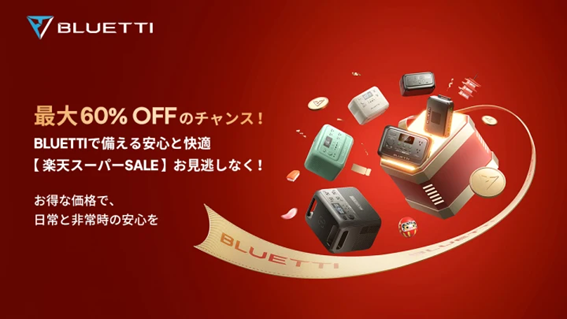 ポータブル電源とクリーンエネルギー分野のパイオニアとして、15年以上にわたり信頼と実績を築いてきたBLUETTI JAPAN株式会社(本社:東京都千代田区、以下BLUETTI)は、2025年12月4日(木)~12月11日(木)に開催される「楽天スーパーSALE」にて、BLUETTI楽天公式サイト限定の特別セールを実施いたします。
