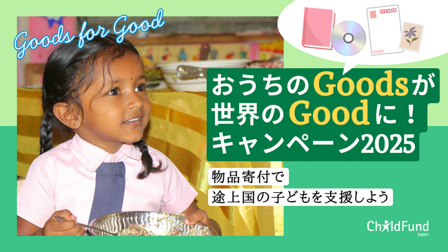 ハガキ・切手寄付の深刻な減少を乗り越えるため、チャイルド・ファンド・ジャパンは、「おうちのGoodsが世界のGoodに!キャンペーン2025~物品寄付で途上国の子どもを支援しよう~」をスタートし、広く協力を呼びかけます。[画像3: https://prcdn.freetls.fastly.net/release_image/8076/100/8076-100-fd91ac14c0394e48c2c3b65b2b518751-1280x720.png?width=536&quality=85%2C75&format=jpeg&auto=webp&fit=bounds&bg-color=fff ]