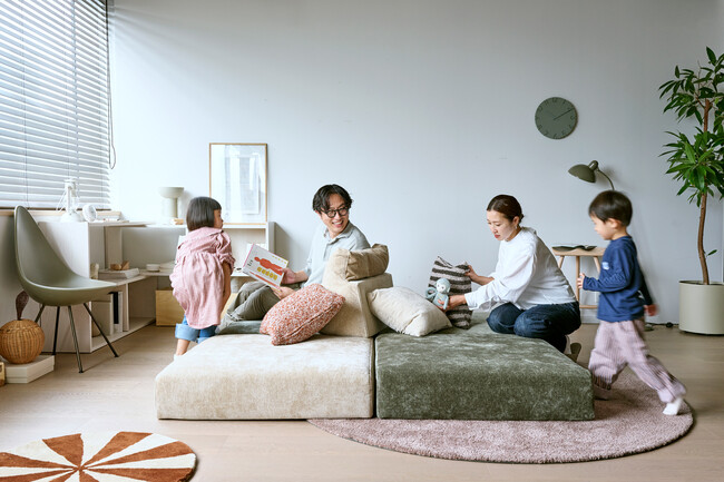 [画像6: https://prcdn.freetls.fastly.net/release_image/71744/101/71744-101-4d6896c8dcf4c53bd244ff05da3a7a4b-1200x799.jpg?width=536&quality=85%2C75&format=jpeg&auto=webp&fit=bounds&bg-color=fff ]厚さ17.5cmのFOAMYは床に近いため、小さなお子様がいるご家庭でも安心してお使いいただけ、ご家族みんなでくつろげる快適な空間を作り出します。床に近い設計は、お部屋に圧迫感を与えず、リビングを広々と感じられる点もメリットです。