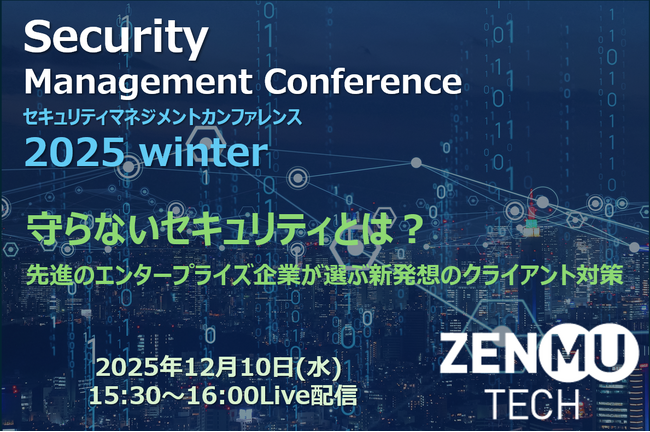 情報を暗号化した上で分散管理する「秘密分散技術」によりデータの保護、データの利活用を追求する株式会社ZenmuTech(ゼンムテック、以下、ZenmuTech、代表取締役社長CEO:阿部 泰久、本社:東京都中央区、証券コード:338A)は、2025年12月10日(水)に、SBクリエイティブ株式会社(ビジネス+IT)主催「Security Management Conference 2025 Winter」にて講演を行います。