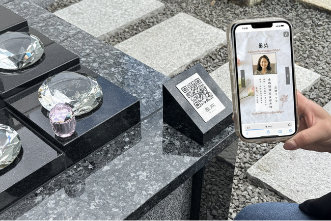 神明寺(千葉県市川市)樹木葬墓地に導入。参拝者はスマートフォンでQRコードを読み取るだけで、先祖・故人の遺影や記録に触れる個別供養が可能となり、遺族の心の安心につながる新しいお墓参りの形を実現されています 。多様化する供養のニーズに応え、「先祖とつながる場所」を守り続ける という寺院の理念を実現しています。(施工:千葉石材)