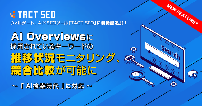 ウィルゲート、AI×SEOツール「TACT SEO」に新機能追加!AI Overviews に採用されているキーワードの推移状況モニタリング、競合比較が可能に