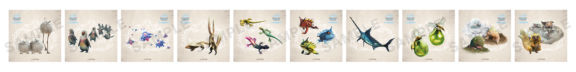 『モンスターハンターワールド:アイスボーン』に登場する環境生物のステッカー(全10種)を1人前のご注文ごとに2枚ランダムでプレゼントいたします。
