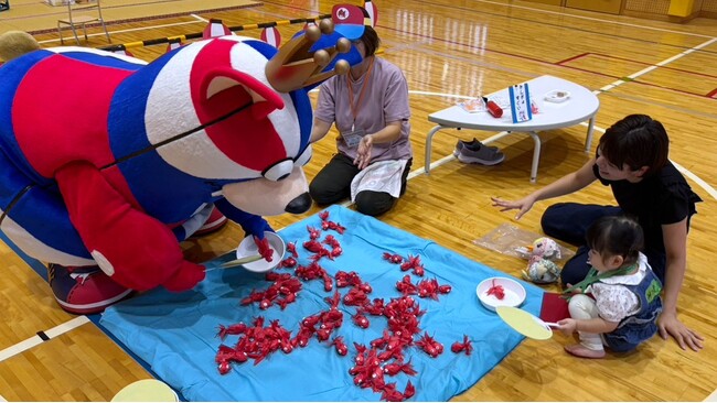 今回の訪問では、職員の皆さまがゴーディーに関する「◯×クイズ」をご用意くださり、子どもたちは真剣に考えながら参加していました。正解して飛び跳ねて喜ぶ子や、悔しそうにする子の姿も見られ、とても盛り上がりました。