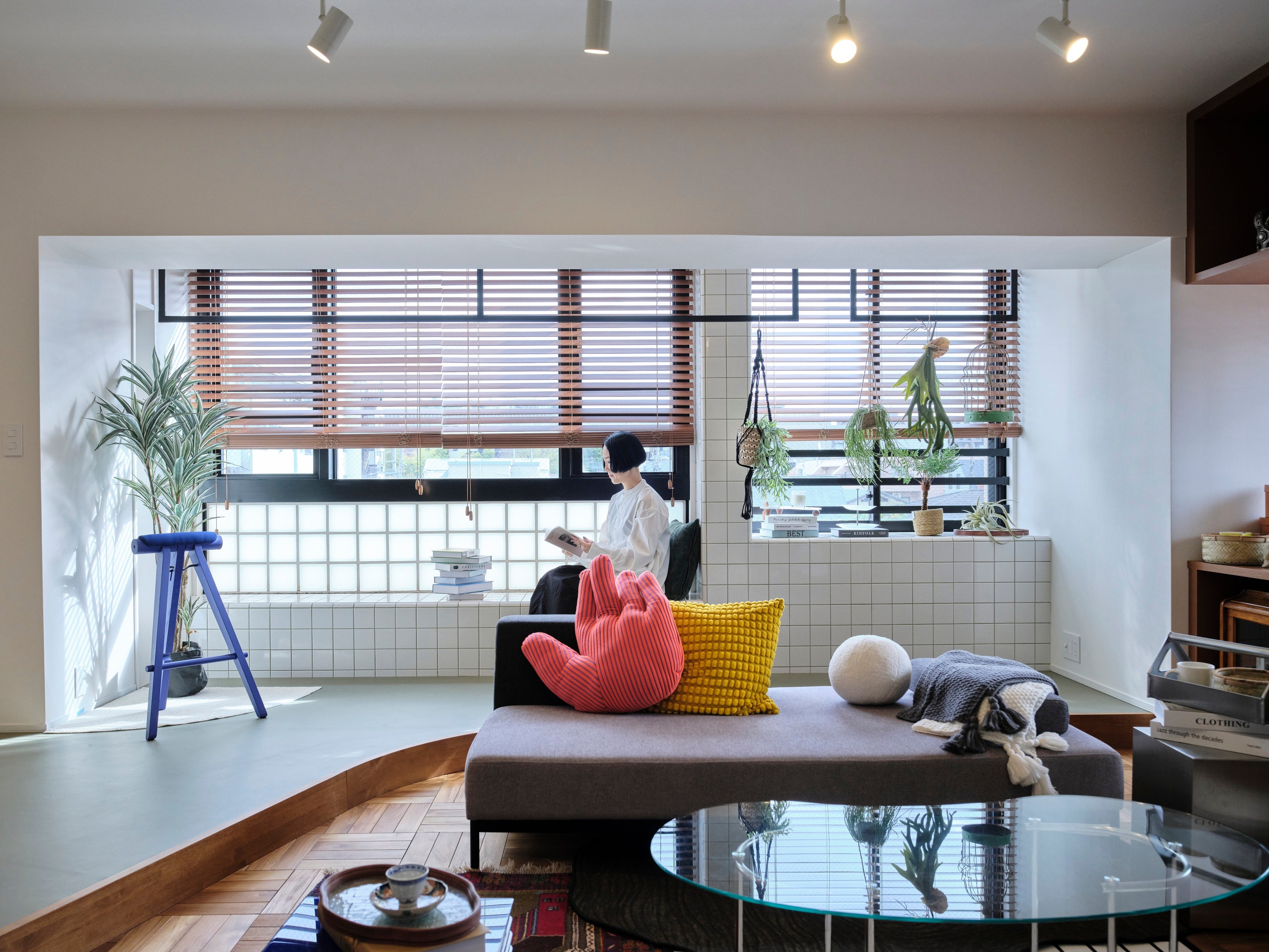大きな横長窓につながる、多治見のデッドストックタイルをつかった窓台は、読書やアートのスペースにもなれば、グリーンを育てるスペースにもなります。ベンチや棚として使う可能性も秘めています。使い手に使い方を委ねることで、長く住まうことを前提とした可変性を残しました。