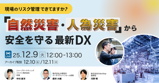 JX通信社、シャープマーケティングジャパン、VideoStepと無料共催ウェビナー開催|「現場のリスク管理できてますか? “自然災害・人為災害”から安全を守る最新DX」