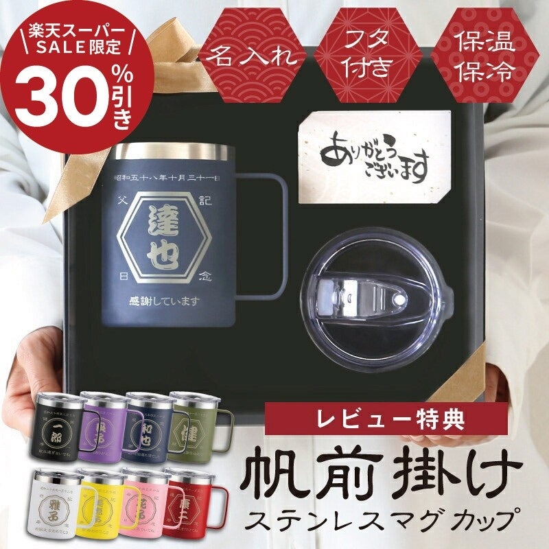 使い勝手抜群のステンレスマグカップに伝統の帆前掛けデザインを彫刻した珠玉のギフトが楽天スーパーセール期間限定で30%OFF!