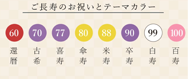 - 長寿のお祝い:還暦、古希、米寿、喜寿など祖父母のお祝いに