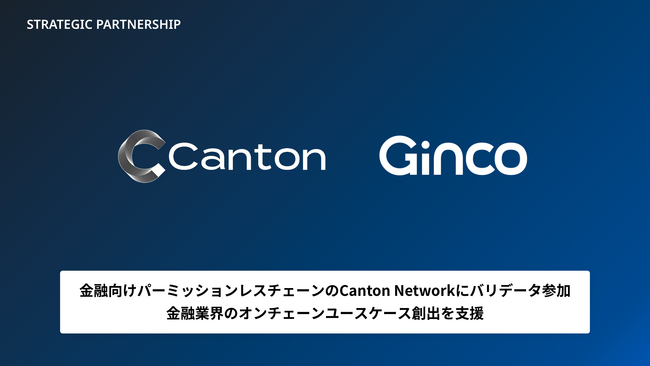 株式会社Ginco(本社:東京都中央区、代表取締役:森川夢佑斗、以下当社)は、世界各国の金融機関およびサービスプロバイダーらの参画するプライバシー対応型パブリックブロックチェーンネットワーク「Canton Network」に、ノードバリデータとして参画しました。また、これに伴い、Cantonネットワークの特性を活かした金融機関向けのパブリックチェーン活用支援を強化・推進してまいります。