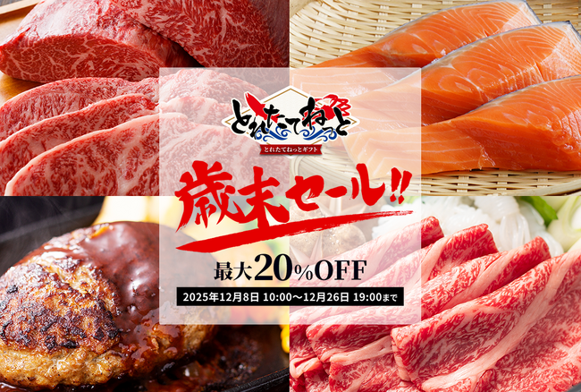 産地直送お取り寄せ通販サイト『とれたてねっと』の運営をCore-Business株式会社(所在地: 東京都中野区、代表取締役:加藤 正樹)は、産地直送お取り寄せ通販「とれたてねっと」にて、「歳末セール2025」を、2025年12月8日(月曜日)10:00AM~12月26日(金曜日)19:00 AMの期間限定で実施いたします。