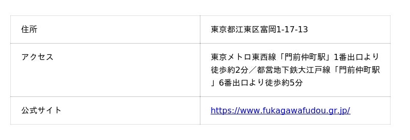深川不動尊(成田山 東京別院 深川不動堂)は、千葉県成田市にある大本山「成田山新勝寺」の東京別院です。
