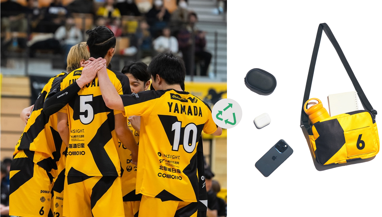 このたび、「HATTRICK Auction」で開催される「北海道イエロースターズ UPCYCLE AUCTION」では、2024-25シーズンのユニフォームパンツを使用したアップサイクルショルダーバッグを、昨年に続く“第二弾”として製作。今回も、実際に試合で使用されたユニフォームパンツを丁寧に仕立て直し、ファンの皆さまへお届けします。