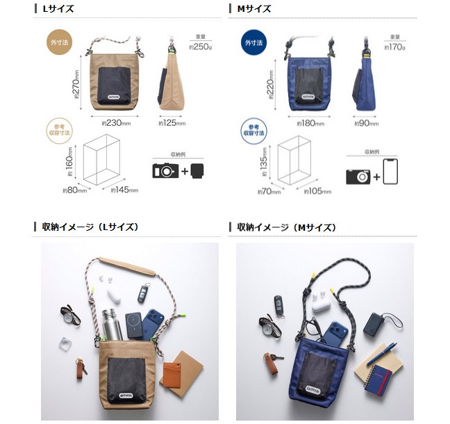 Lサイズはミラーレス一眼カメラやVLOGカメラをコンパクトに収納でき、Mサイズはコンパクトカメラやインスタントカメラの持ち運びに最適です。