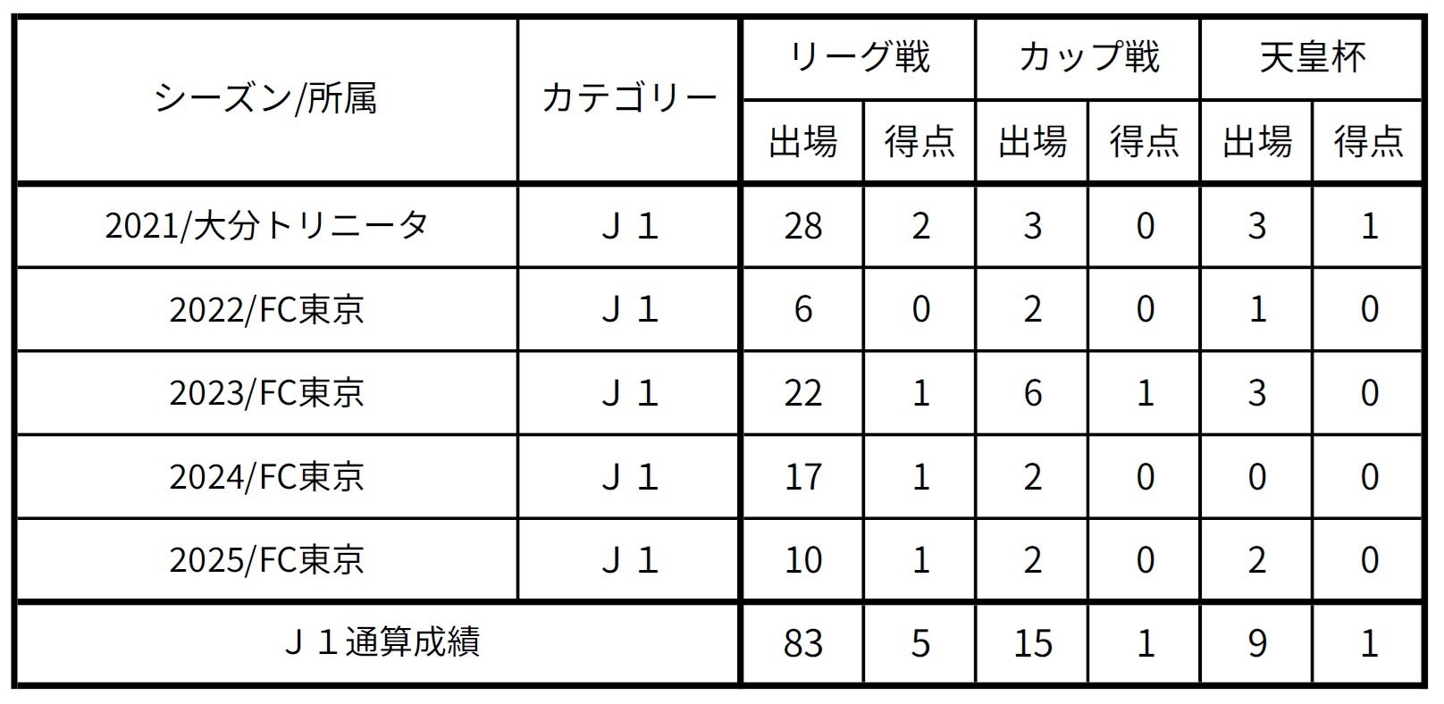 □出場記録(2025年12月5日時点/国内クラブ所属時のみ)
