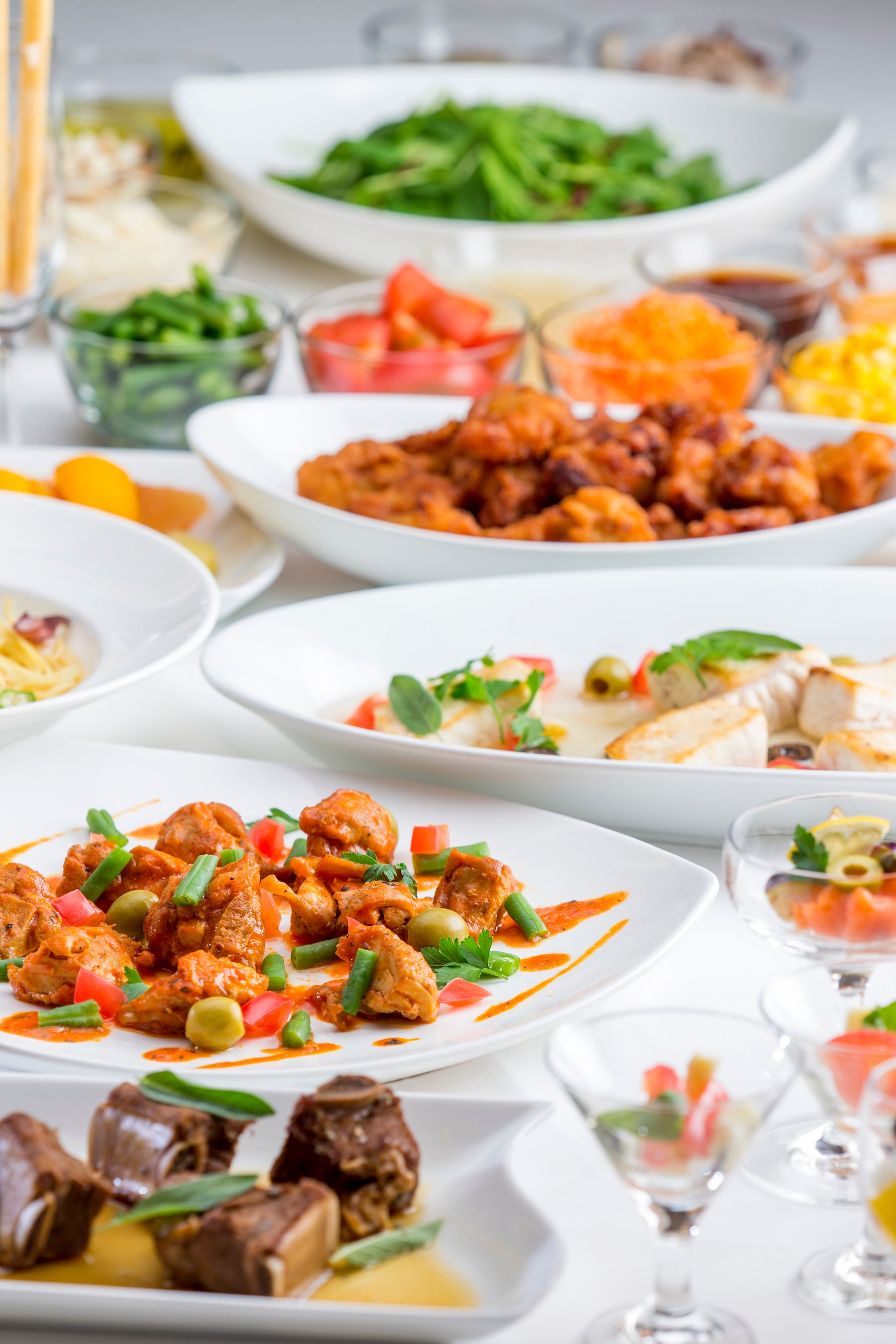 ディナーバイキングのメイン食材”蟹”を使った料理をはじめ、ローストビーフなどが楽しめるライブコーナーも特設。ホテルの豪華ディナーをお楽しみください。