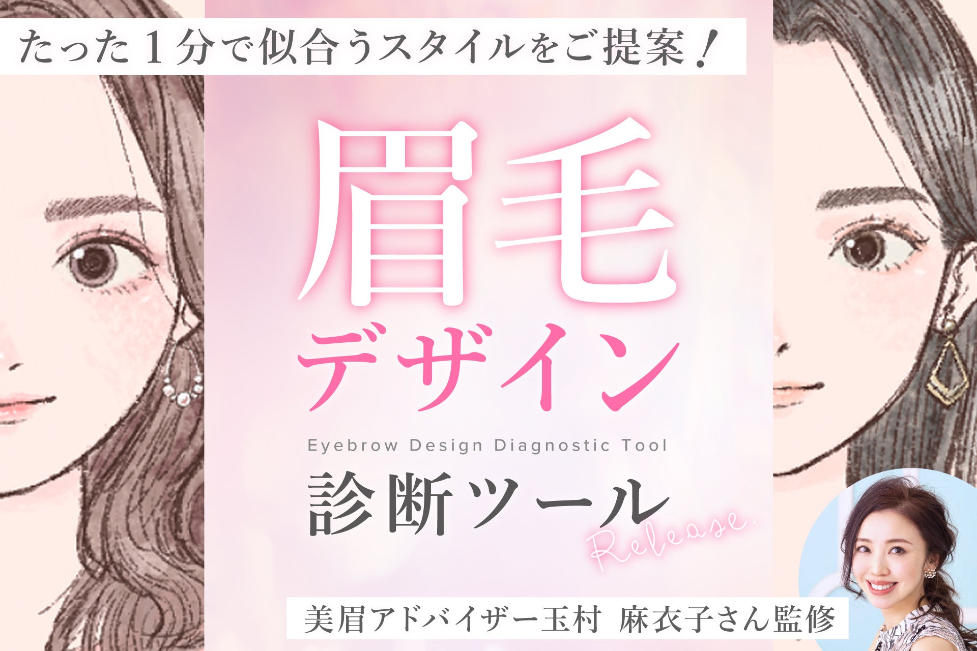 「眉毛デザイン診断ツール」は、輪郭・髪型・眉の位置など、簡単な質問に答えるだけで一人ひとりに似合う眉デザインをご提案するWeb診断です。監修は、多くのメディアで活躍する美眉アドバイザーの玉村 麻衣子さん。プロのメソッドを活かし、誰でも簡単に「魅力を最大限引き出す眉」を知ることができます。