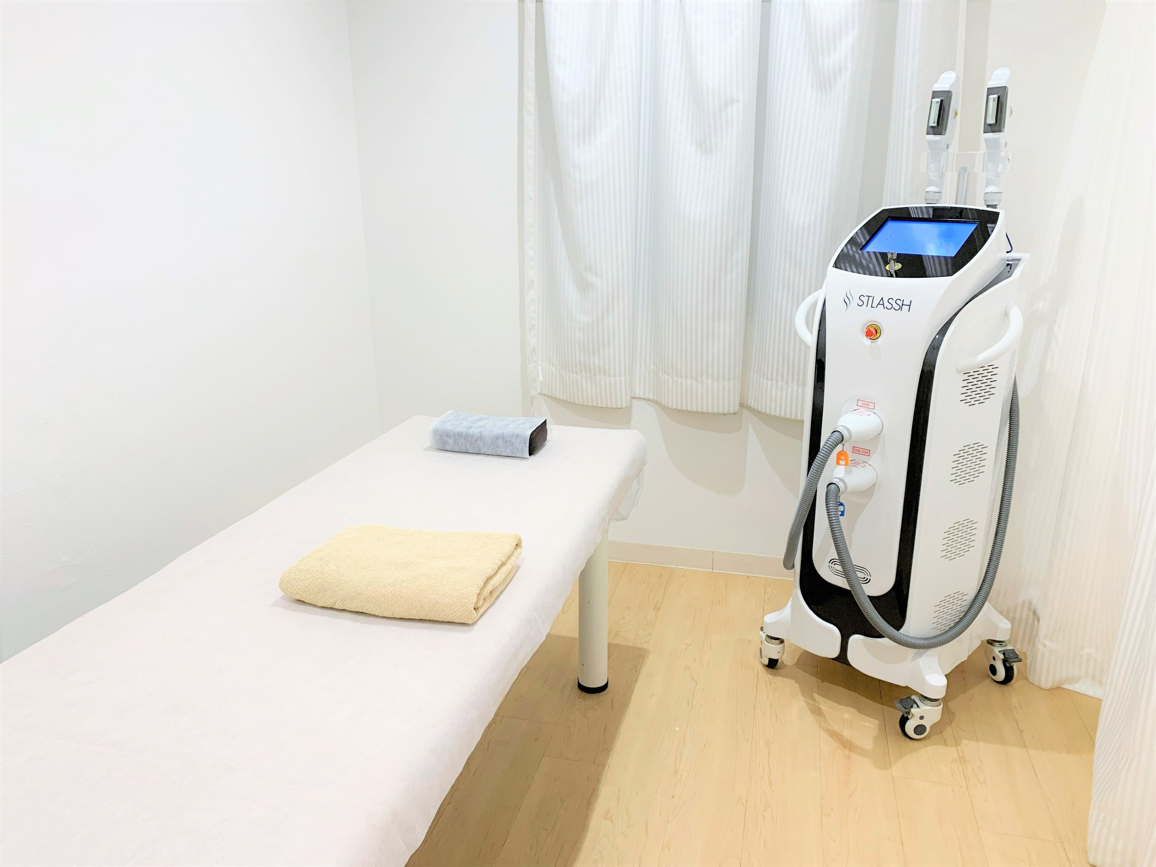 【 1 】独自開発の脱毛機『STRIKE(ストライク)』を採用熱破壊式(IPL脱毛)と蓄熱式(SHR脱毛)をW照射可能な自社開発の脱毛機『STRIKE』を使用しています。照射面を冷却しながら施術するので、痛みを感じにくいのが特長です。