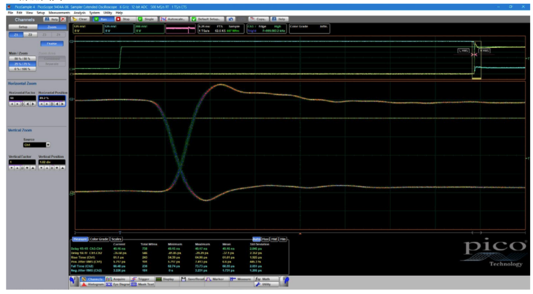 また、同社独自の「PicoSample 4」ソフトウェアに対応しており、アイダイアグラム・ジッタ解析・Sパラメータ評価などの高度な解析機能を標準搭載。GUIベースで直感的な操作性を提供し、波形解析からデータエクスポートまでシームレスなワークフローをサポートします。