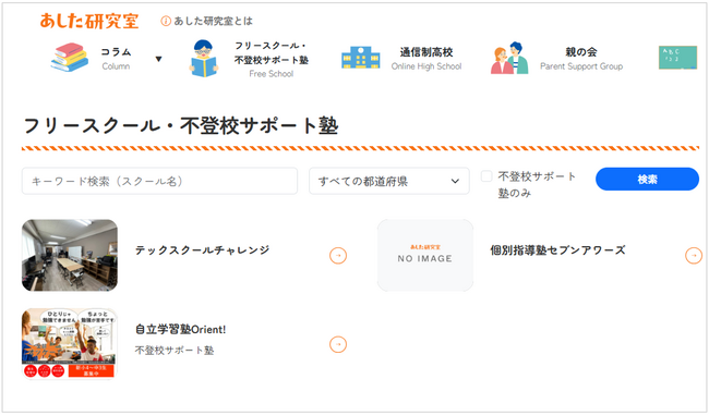 不登校ポータルサイト「あした研究室」のフリースクール・不登校サポート塾紹介ページ