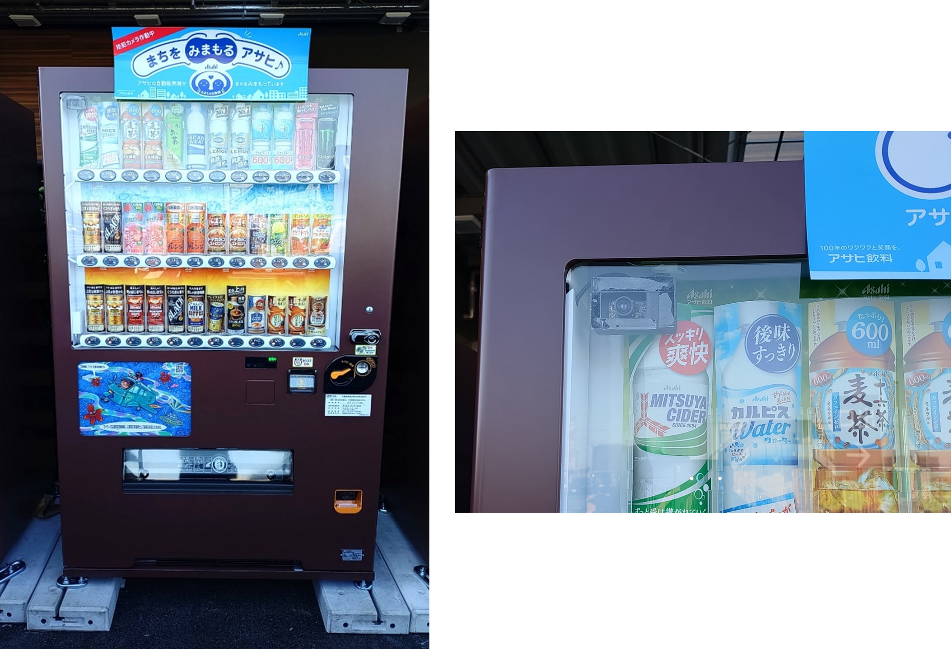この自動販売機は、アサヒ飲料が2019年から導入を開始した「防犯カメラ付きの自動販売機」(通称:「まちをみまもる自販機」)と、災害時に電力が使えない状況でも飲料を提供できる「災害対応型自動販売機」の機能を併用したものです。平時は内蔵されたクラウド型カメラによって地域の安全を見守る役割を果たし、人通りが少なくなる夜間の防犯対策にも役立ちます。また、災害時には、地域の皆さまへ飲料を無償でご提供します。