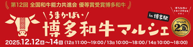 九州旅客鉄道株式会社と株式会社ヌルボンは、12月12日(金)~14日(日)にかけて、「うまかばい!博多和牛マルシェ in 博多駅」を開催いたします。
