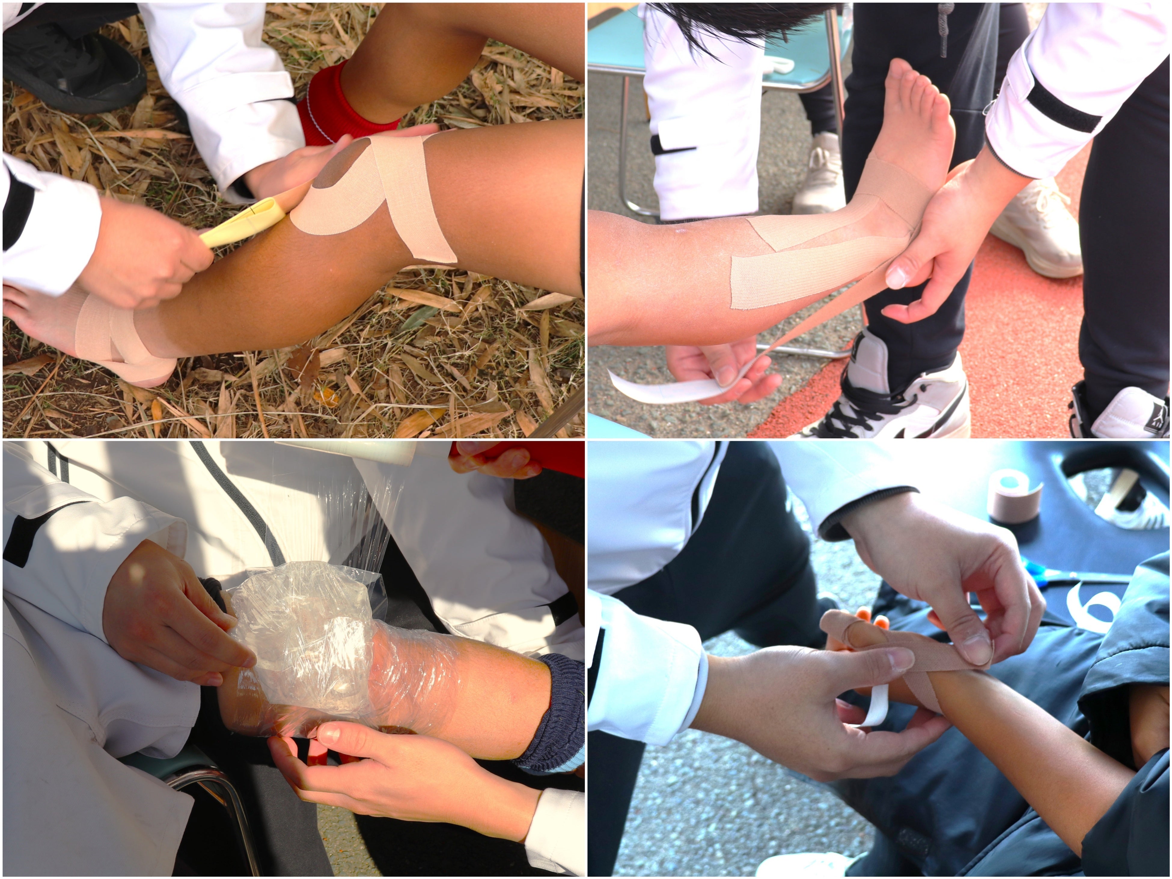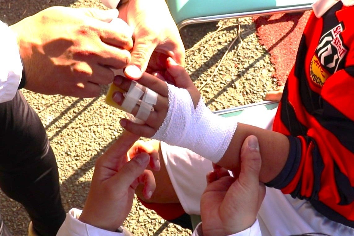 ケガをした選手は、次の試合に出場できるか不安な表情で訪れていましたが、症状の説明や適切な処置を受け、元気に試合に戻っていました。