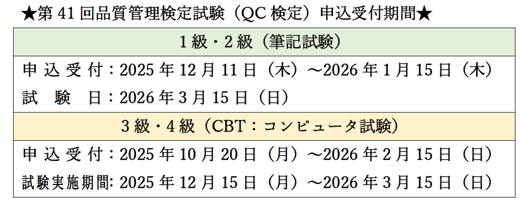 【累計申込者175万人突破!!】品質管理検定(QC検定)3級・4級の申込受付中!|12/11~1級・2級の受付開始予定