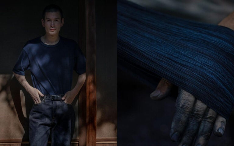 この地で誕生したMOMOTARO JEANSは、幾度も染め上げて到達した、深い藍色と独特な風合いの「特濃 - TOKUNO BLUE」を特徴としています。