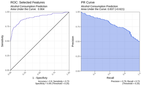 - - モデルの予測精度の評価に加え、主要な特徴量を解析し、飲酒推定に寄与する生体指標を抽出