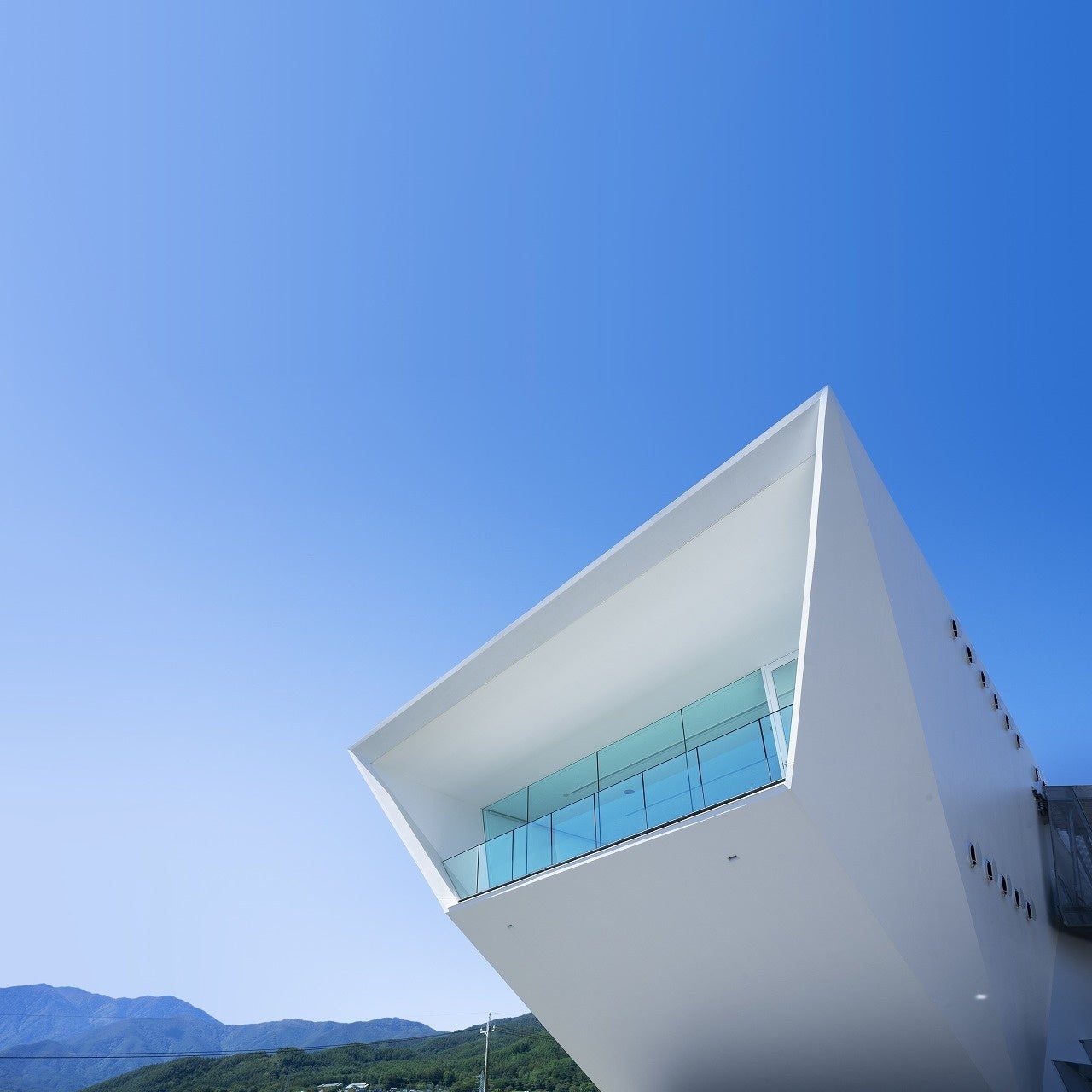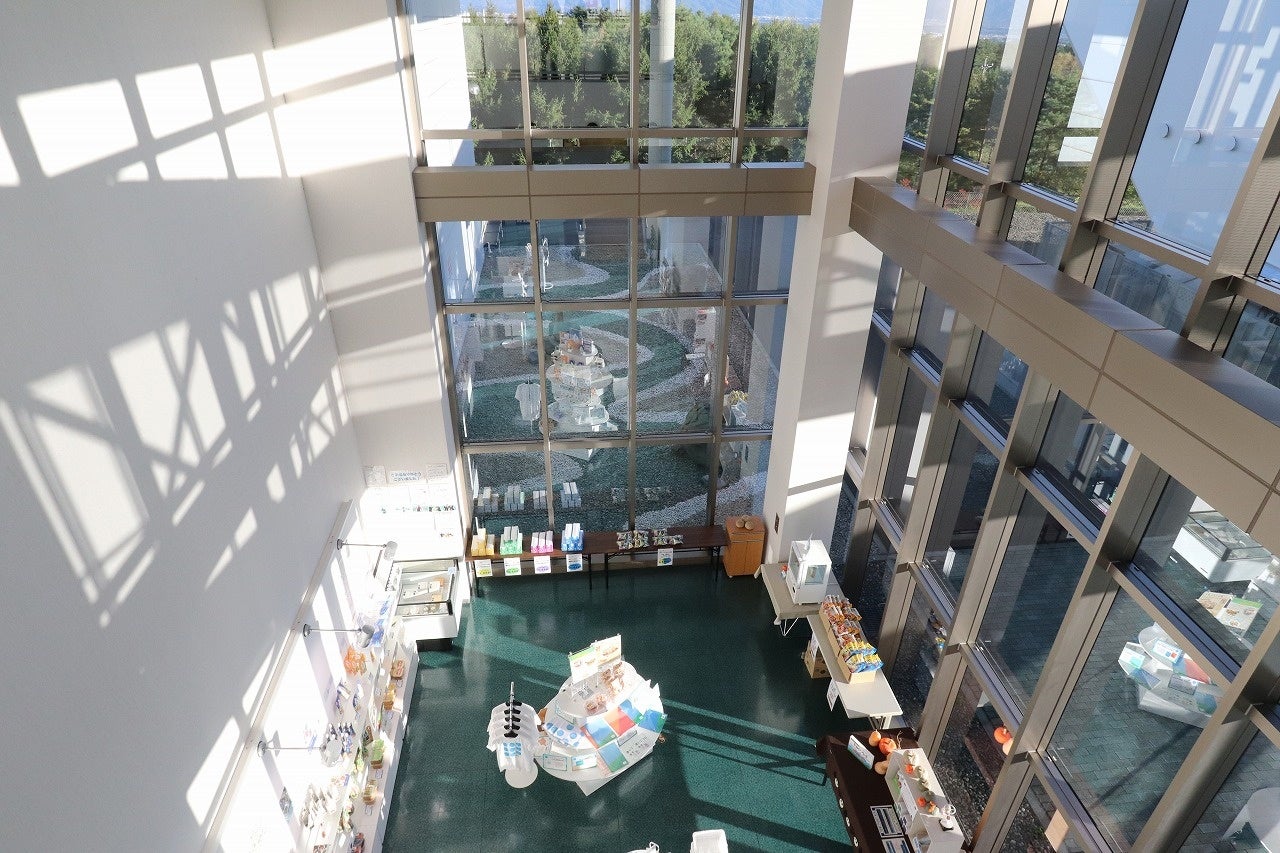 外観&吹き抜けのエントランス中央アルプスと南アルプスに囲まれた風光明媚な地に位置し、雪をまとった山々をイメージした特徴的な白い建物は、その斬新なデザインでこれまで数々の賞を受賞しています。