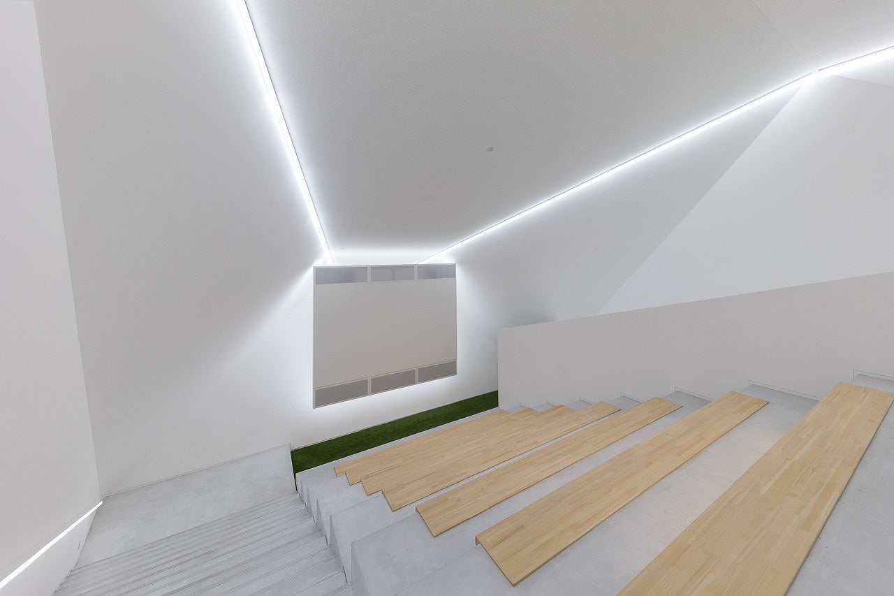 ミニシアタールームは、壁や天井まで白で統一され、間接照明のラインがアクセントになったデザイン性に富んだ空間でミーティングやプレゼンルームとしてもお使いいただけます。その他、明るい雰囲気を醸し出す通路、大きな窓から光が差し込む廊下、階段から続く同線、さらには外の景色を眺めながら歩けるスペーシーな連絡通路など、写真以外にも撮影のバリエーションを広げる複数の撮影スポットがあります。