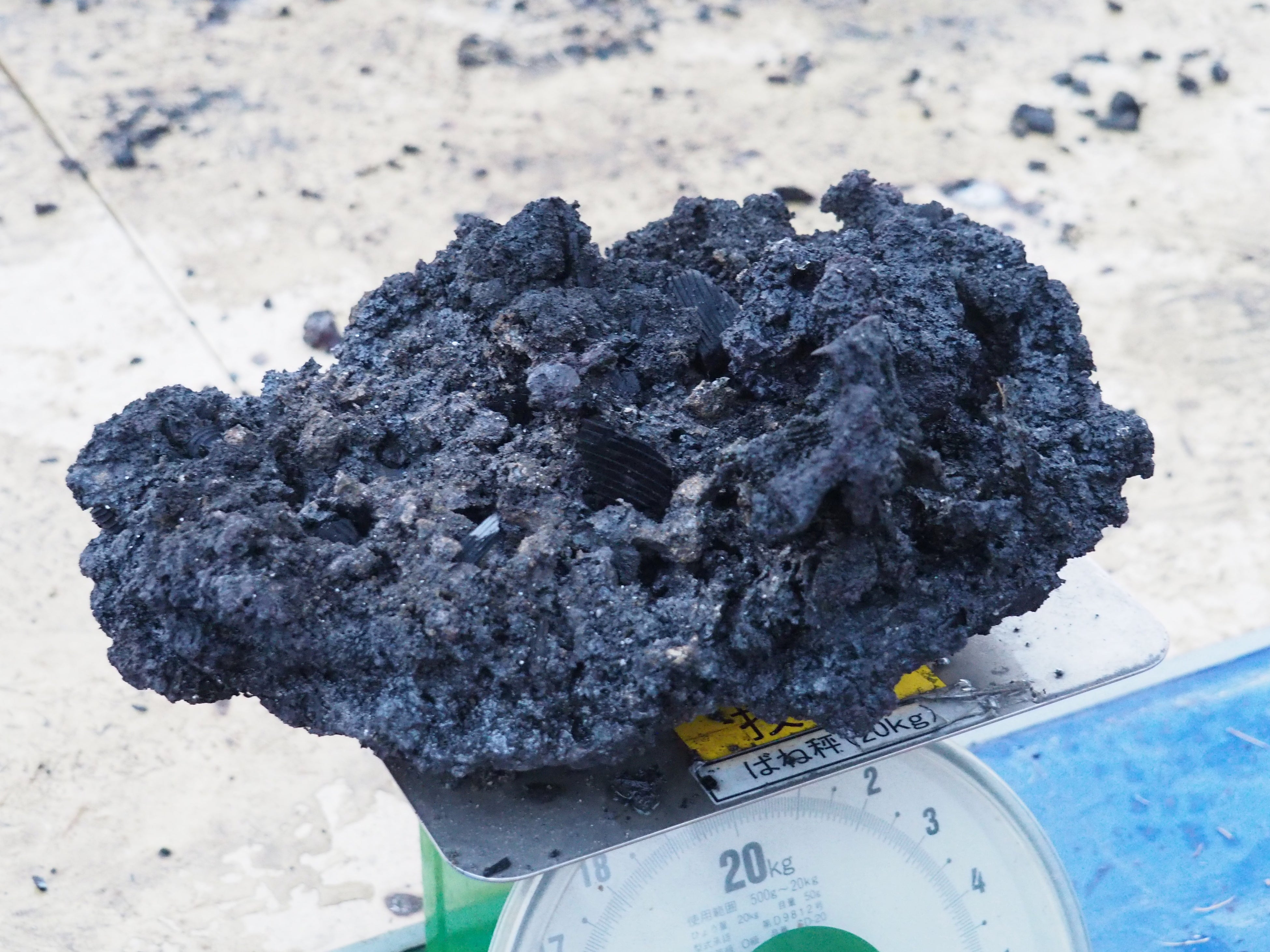 取り出した玉鋼を含む粗鋼の塊「鉧(ケラ)」