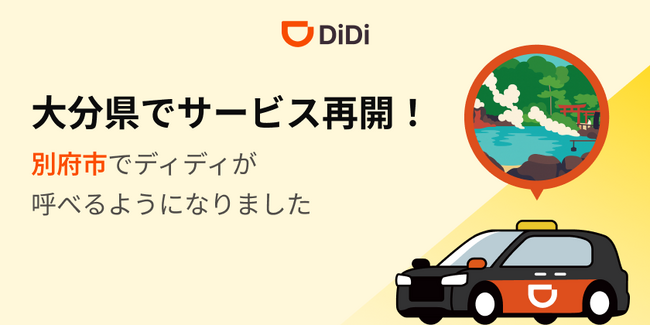 DiDiモビリティジャパン株式会社(東京都港区、代表取締役社長:和久山大輔)は、2025年12月9日(火)より、大分県別府市にて配車アプリ「DiDi(以下、「ディディ」)」のサービス提供を再開します。