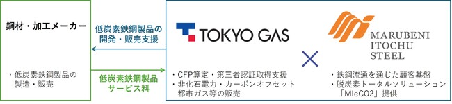 東京ガス株式会社(社長:笹山 晋一、以下「東京ガス」)と伊藤忠丸紅鉄鋼株式会社(社長:石谷 誠、以下「伊藤忠丸紅鉄鋼」)は、このたび、鋼材・加工メーカー向けに、低炭素鉄鋼製品の開発・販売を支援するサービス(以下「本サービス」)の提供を開始しました。なお、エネルギー企業と鉄鋼総合商社が提携して、低炭素鉄鋼製品の開発から販売を包括的に支援する枠組みは国内初となります。