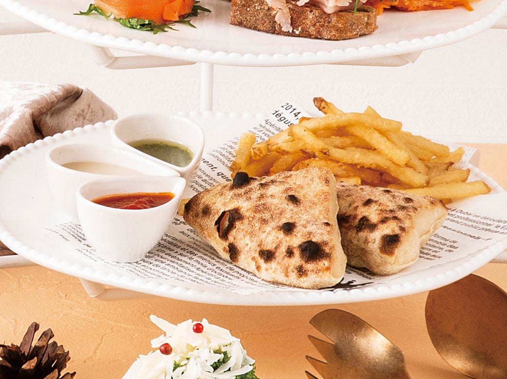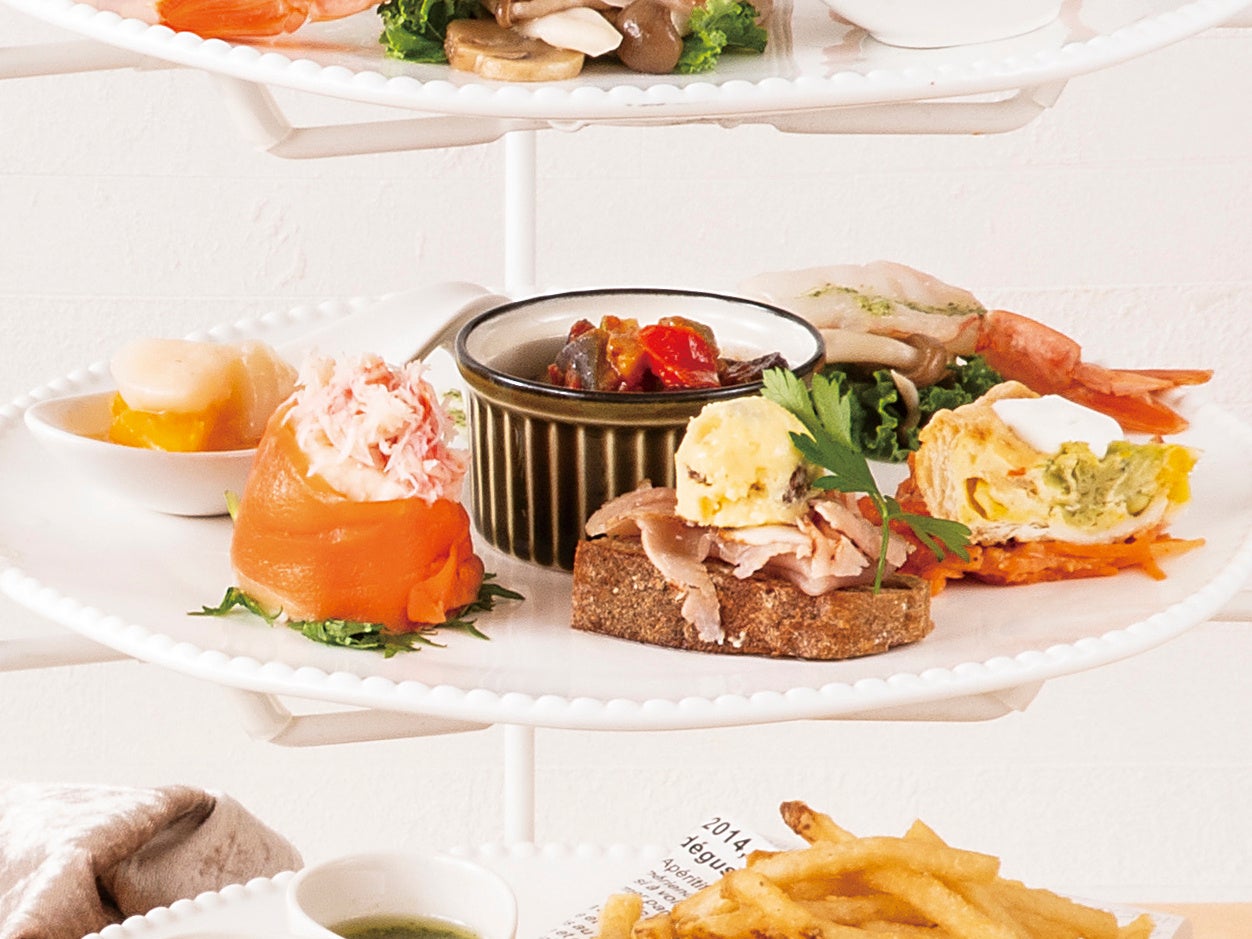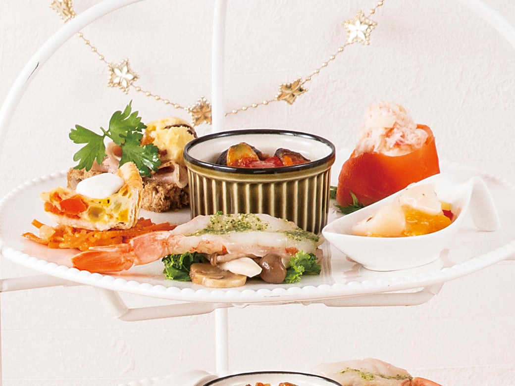 ペルティカ自慢の焼き立てフォカッチャや、生ホタテのカラフルマリネなど、会話も心も弾む彩り鮮やかな3段プレートをお楽しみください。