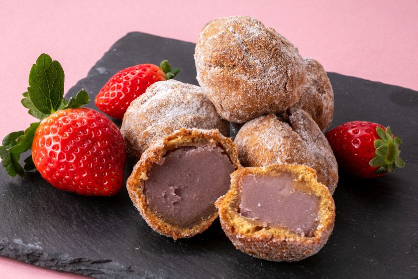 ピューレ状にした完熟いちごを白餡と合わせることでできるいちご餡は、いちご&のオリジナル。店内では【店舗限定】当日揚げたてあんドーナツも販売しています。
