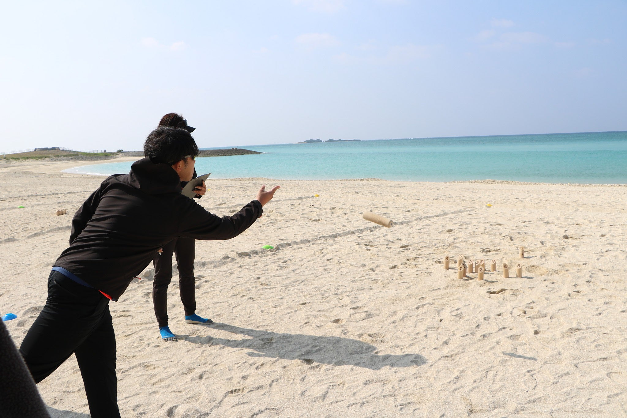 フィンランド発祥のモルックをビーチで行う「ビーチモルック」
